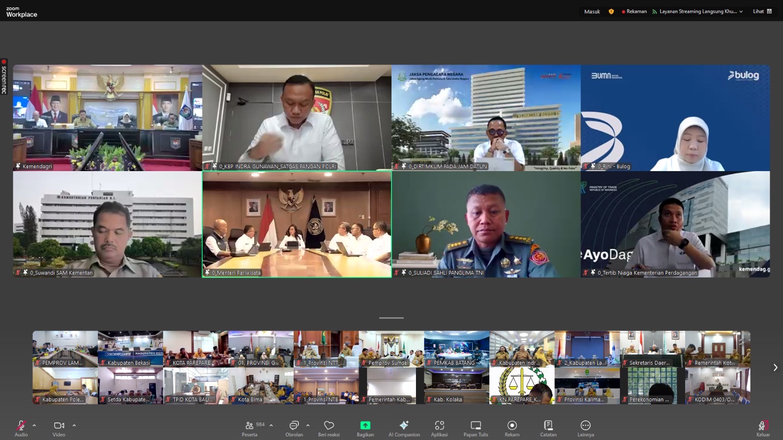 Bandar Lampung --- Pemerintah Provinsi Lampung diwakili Staf Ahli Bidang Ekonomi, Keuangan dan Pembangunan (Ekubang), Zainal Abidin mengikuti Rapat Koordinasi Pengendalian Inflasi Daerah dirangkaikan dengan Sosialisasi Surat Edaran Menteri Pariwisata RI (secara virtual) bertempat di Ruang Command Center Lt. II Dinas Kominfotik Provinsi Lampung, Senin (23/06/2025).